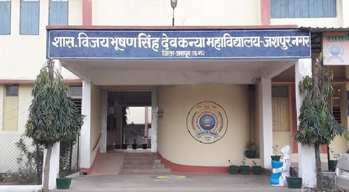 The college is now well known as Govt. Vijay Bhushan Singh Deo Girls PG College, Jashpur on behalf of the name of last king Vijay Bhushan Singh Deo of Jashpur. The college was established in 1987 with its first Principal Dr. B.P. Panda and ten students in a small room of Govt. NES College, Jashpur for fulfilling the educational requirements of the girls of the area. The experience of Dr. Panda played very important role for the primary establishment of the college. In 1988-89 the college was shifted to officers club building and in 1999 by the order of District administration to Model School, Jashpur building. The college was shifted to its own building in February 2004.